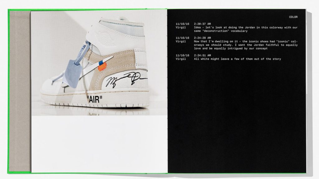 “The foundation of my practice isn’t nearly the end result—it’s rigour and process of the logic,” Abloh said in a statement. “The archive is the paper trail of those artifacts. The Icons book is, in a way, the only revealing lens to understand that the catalogue of the 50-plus Nike shoes I have designed are in my mind ‘one shoe.’ One story.”