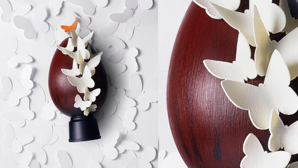 An icon of French art de vivre, the historic hotel located steps away from Champs Elysées is a champion of French cuisine that boasts Michelin-starred restaurants (yes, plural) and its own chocolaterie. Each year, the team envisions its meticulous creation of the Easter Egg, and this year, the ‘Butterfly Effect’ creation is a nature-inspired take. Hand-crafted using Madagascar dark chocolate, the egg is adorned by a delicate flourish of fluttering butterflies. To echo the elegant creation, the lobby of Le Bristol Paris is also decorated to usher in springtime with 20,000 paper butterflies by Studio Björg in collaboration with renowned paper artist Mathilde Nivet. The Easter egg will be available from 22 March to 10 April and is priced at €90.