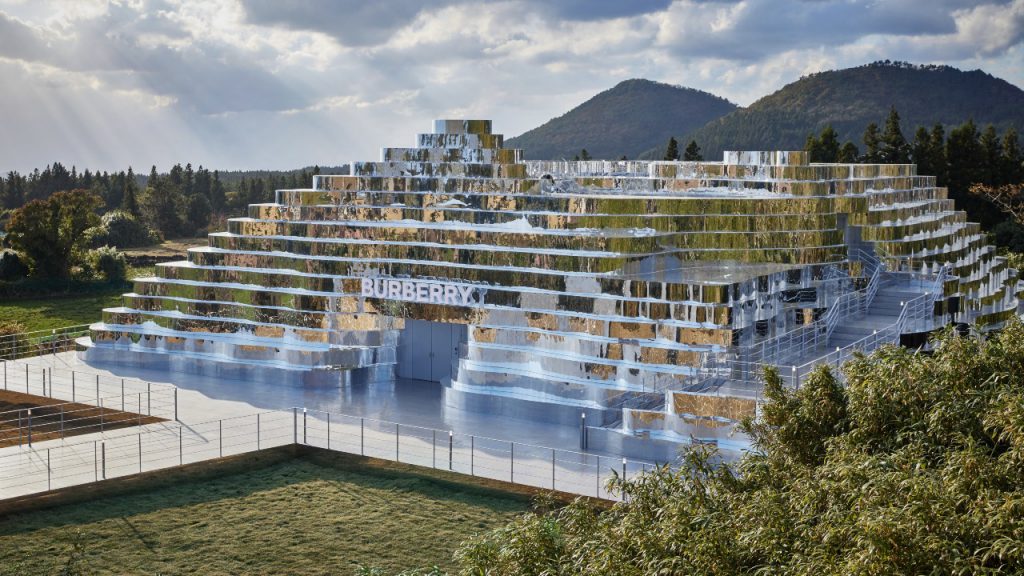 Following its inspirational effort with its Imagine Landscapes pop-up store in South Korea’s Jeju Island in November, Burberry has been recognised for its revelatory work with the Prix Versailles 2022 Official World Awards in the Shops & Stores category last month. This topographic mirrored sculpture rises from the landscape as a dreamlike and futuristic monolith, sculptured with contoured lines to recall the landscape which surrounds it, a narrative and a meeting of the indoors and outdoors, and of both the real and imagined.