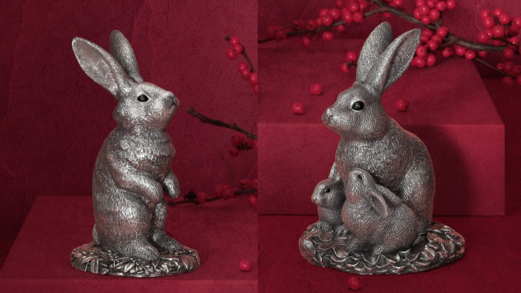 As the Chinese Lunar New Year approaches, the cutest animal of its zodiac arrives. Comyns, the silversmiths with over three centuries of lineage, turns its artistic nous onto the cuddly rabbit, with two brand-new lucky rabbit sculptures symbolising love and comfort. In the Rabbit Family (RM1,050), a mother rabbit and offspring snuggle against each other, while the single Standing Rabbit (RM960) is rendered with lifelike grace with its soft, matted fur captured through incredibly fine detailing.