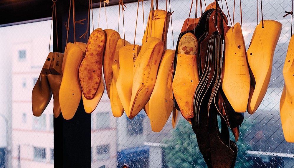 Up a narrow flight of stairs in an understated building in the Aoyama neighborhood is Yohei Fukuda, one of the most sought-after shoemakers in Asia, if not the world. A smiling, thoughtful man with a neatly trimmed beard, Fukuda trained at Edward Green in Northampton, the epicenter of English shoemaking, before working at George Cleverley, one of London’s best-known bespoke footwear shops. He began his company in 2008, making shoes at home, and in 2011 opened his store in Aoyama. He now has four apprentices and a 2-year waiting list for his coveted shoes. “I wanted to do something a little different from English shoemaking,” he says. That means a house style that, while grounded in English tradition, is not slavishly derivative but rather based on the needs and preferences of his customers. “We prepare a fitting sample first,” he explains, “since some customers want shoes to be snug and others want them loose, and we don’t know which just by measuring feet.” Above the showroom is the workroom, where Fukuda carves wooden lasts. Bespoke shoes cost about US$4,400 RM17,800) per pair; for the less patient, the shop offers ready-to-wear models that are lasted and welted by hand for US$2,100 (RM8,495) per pair.