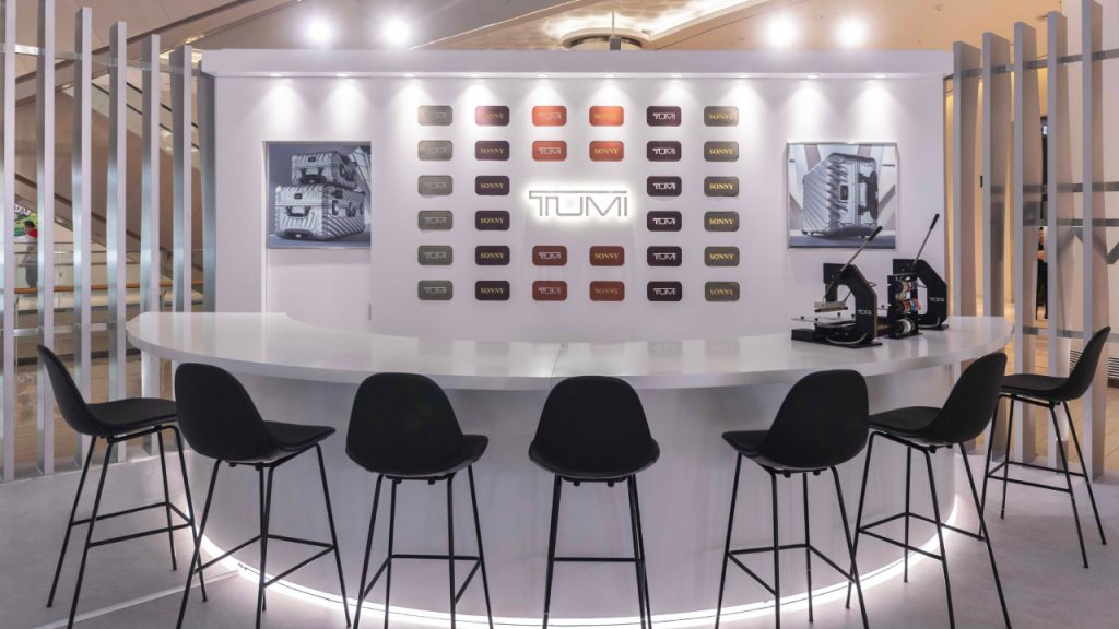 The pop-up also featured TUMI Hypercraft Sculpture, a multidirectional perspective sculpture by Michael Murphy. The American artist, famous for his artworks that manifest differently depending on where and how you view them, paid homage to the popular 19 Degree Aluminum suitcase and the Tumi logo. Viewed from the many floors above ground level—where the pop-up was held—you may assume that it’s just a bunch of randomly hanging structures. But if you looked at the sculpture intently from the side, the 19 Degree suitcase eventually appeared; and if you continued gazing at it as you walked around, the Tumi logo came into view. “This sculpture he created with Victor Sanz, our Creative Director, is a great metaphor for Tumi,” said Adam Hershman, Tumi’s Vice President of Asia Pacific and Middle East, at the pop-up. “When you look at it from a certain angle you’ll see the exterior, a beautiful sculpture, and something that’s really cool. And then when you start to look at it with more detail, it becomes something else. It’s really like a magic moment. And I think that’s also how we are as a company—we create products with a beautiful exterior, and as you look more into the details, you’ll see how much thought and intention has gone into every single element of every product that we create.”