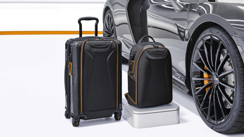 “At McLaren we focus on articulating a clear design language and materials selection which combines and leads into our car’s performance,” the marque’s design director, Rob Melville, said in a statement. “We wanted to capture those aspects with TUMI, so we’ve spent a great deal of time working to analyse and refine every aspect of this collection.”