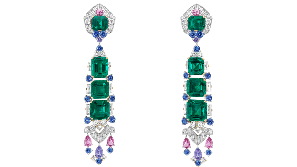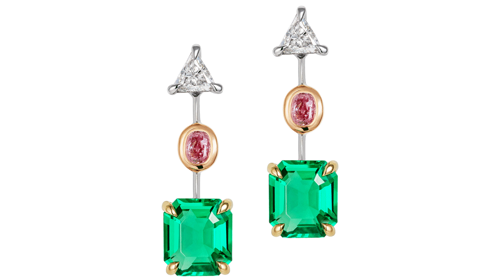 Thelma West is one of the jewellery world’s Renaissance women. In addition to her eponymous jewellery house where she designs bespoke jewellery for discerning clients, she is also a certified gemologist, a diamond dealer, and founded a gemological grading laboratory in London. Her trained eye and extensive network allow her to source incredible stones that inspire each of her bespoke designs. The Eden drop earrings feature 2.3-carats of rich and almost crystal clear-looking Colombian emeralds topped off with pink and white diamonds.