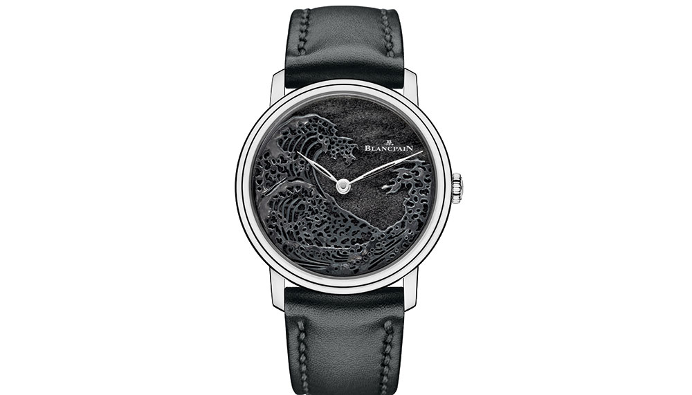 Swiss watch manufacture Blancpain draws deeply from its dynamic yet ominous power in the creation of its Metiers d’Art Villeret The Great Wave.