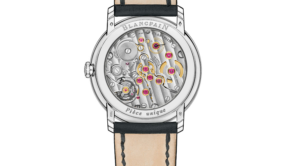 To craft the wave, Blancpain reprised an ancient Japanese technique called Shakudo where following the engraving stage, the applique is immersed in a bath of rokusho salts where it gains a unique dark patina that’s intentionally kept irregular as nature intends. Then, certain parts of the applique are polished while others are left matte, in order to intensify the effect of a huge billowing wave.