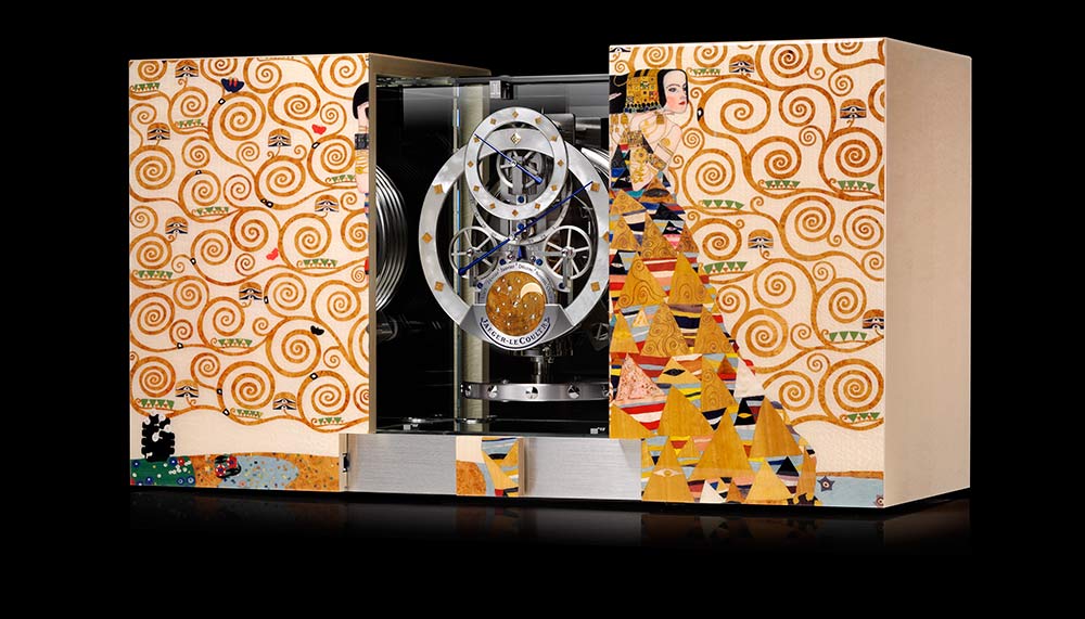 Other than Van Gogh, Gustav Klimt is another artist whose works the Grande Maison has adapted to its timepieces. Instead of the Reverso, however – or any wristwatch for that matter – it applied the Austrian painter’s works to the one-of-a-kind Atmos Clock. In a new 10-piece limited edition, the Atmos Marqueterie faithfully reproduced Klimt’s famous painting, The Kiss, out of more than 1,200 tiny shards of wood.