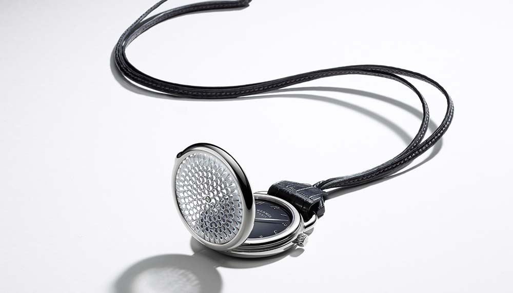 In the Arceau Pocket Millefiori, the most exclusive model in the collection, the crystal piece serves as the pocket watch’s cover, which Zimmermann says took a bit more effort to produce due to the half-moon shapes in the motif. The generously sized 48mm white gold timepiece features a shaded grey enamel dial with white gold slanting numerals, and is powered by the self-winding H1837 movement equipped with a 50-hour power reserve. Priced at RM567,100, the watch comes with a cord-strap and pouch in matt graphite alligator.