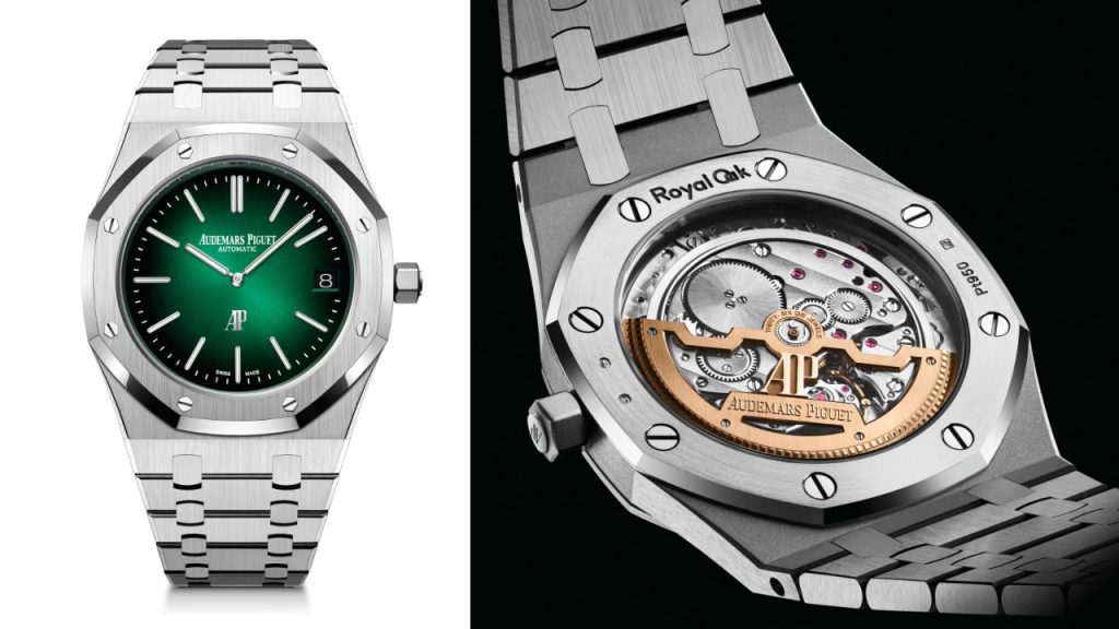 Owners will find the 247-part movement visible behind the oscillating weight. The ultra-thin movement, at just 3.05 mm, allows for the Royal Oak “Jumbo” Extra-Thin watch’s slim profile. Still, at 19,800 vibrations per hour, it has a minimum guaranteed power reserve of 40 hours. It’s also water-resistant to 50 metres.