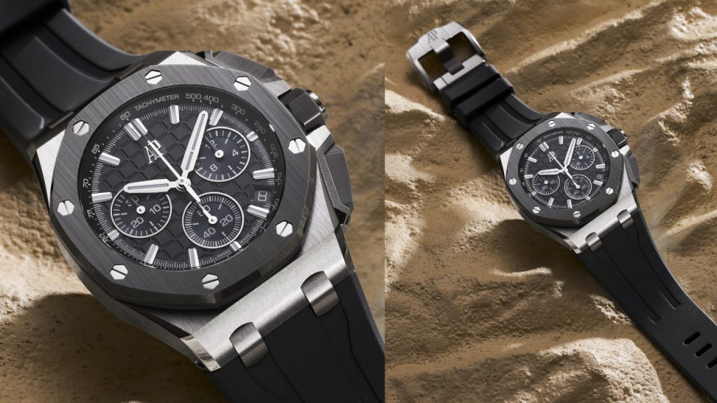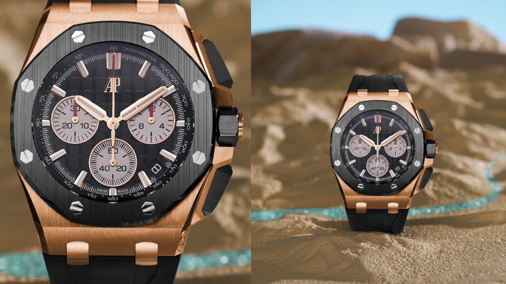 In terms of dial aesthetics, the iconic ‘Mega Tapisserie’ dial is back, sharpened and tweaked to offer greater contrast and show off its fine finishing. Its hands and markers are redesigned for stronger presence, and the full signature is dropped for the large ‘AP’ logo. The layout of the chronograph is also unconventional, with the minute counter at 9 o’clock, hour counter at 3 o’clock, and small seconds at 6 o’clock.