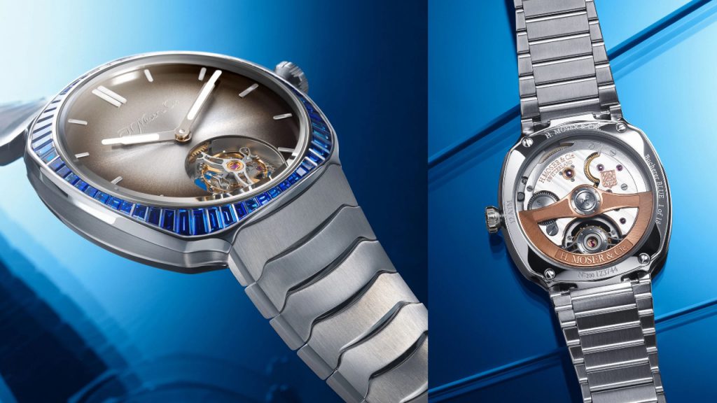 H. Moser & Cie’s Streamliner Tourbillion is now the first limited-edition Streamliner made exclusively for a retail partner. In homage to the Bucherer Blue line, H. Moser & Cie artisans placed 60 baguette-cut blue sapphires (totaling nearly 3 carats) along its bezel, which offer a sparkling accent to its blue fume dial. The watch is also the first edition to feature a double-hairspring tourbillion movement in a Streamliner case. The watch, which achieves a 72-hour power reserve, is available for US$119,900 (about RM557,000).