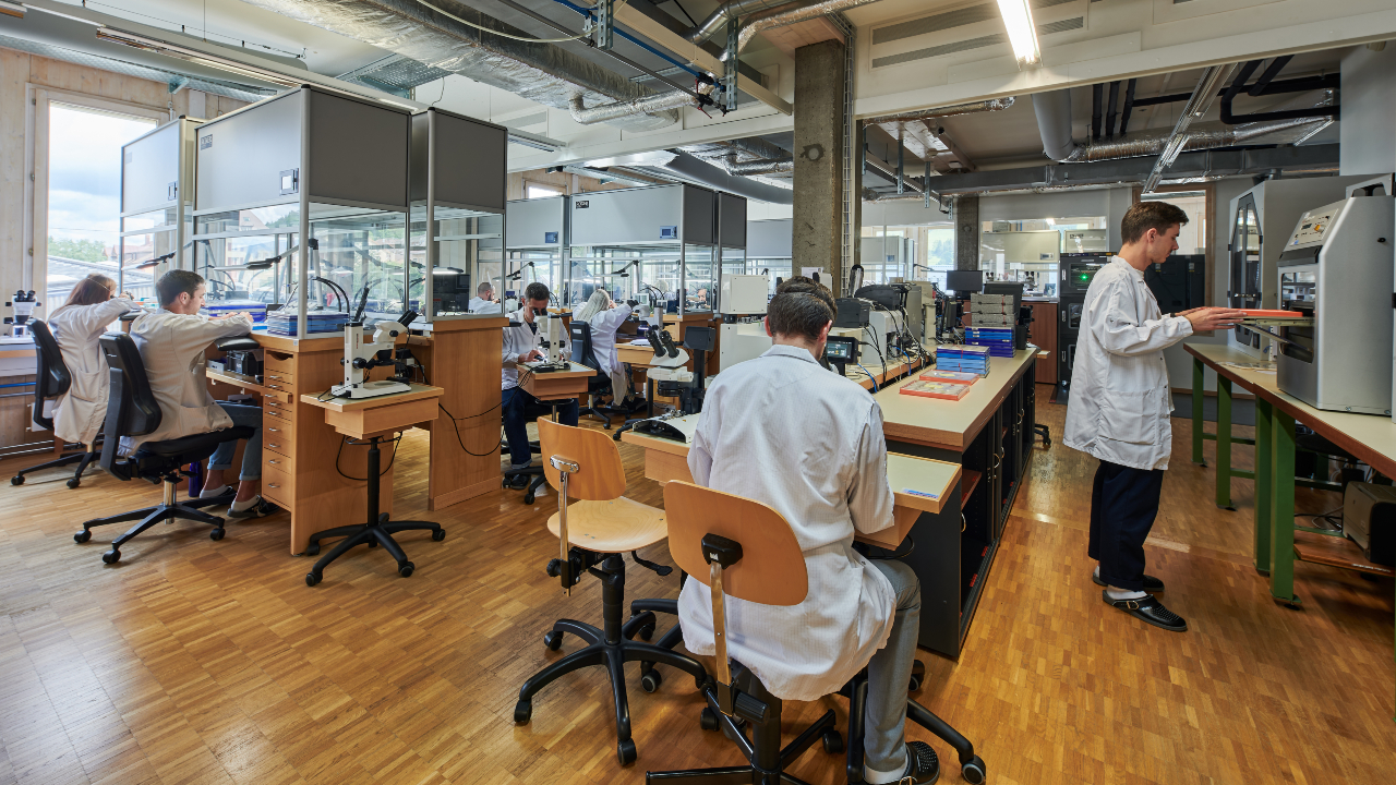 Product conception and design originates in Neuchâtel; Le Sentier is then tasked with the research, development and prototyping of the movement. It is an encompassing technical process—starting from scratch with technical drawings, 3D computer modelling, and simulations—that can take years for the more complicated calibres. They are constructed here, too—baseplates and bridges are machined, while more delicate and complex pieces, such as tourbillon cages, are fashioned out of electroerosion. The parts are then finished in the traditional fashion—anglage, perlage, circular graining, striping, and the like. They are then assembled in different ateliers—a larger one for simple movements, and a smaller one dedicated to more complicated ones such as perpetual calendars, tourbillons and the ultra-small Picolissimo. Watchmakers typically work in groups of four, with three assembling their own movements and one dedicated to regulation. There is an additional atelier dedicated to chiming complications such as minute repeaters, or the Carillon Tourbillon and Grande Sonnerie Tourbillon executions in the Octo Roma collection.