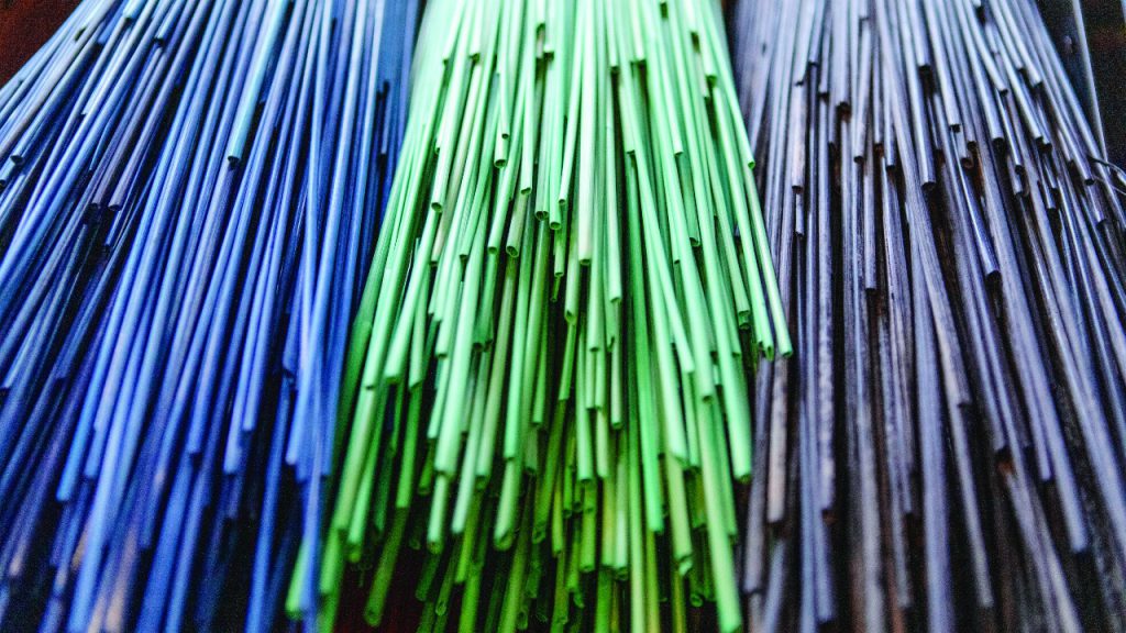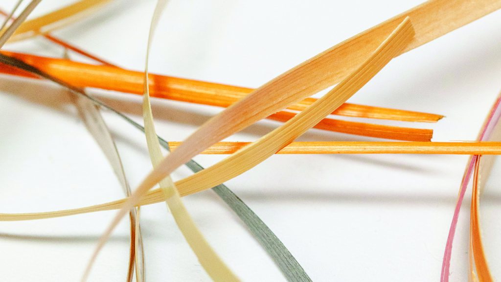The straw used in the marquetry must be finely sliced to length before it’s unfolded with a bone tool. The fibres are then flattened, soaked and softened in cold, warm and hot water. Finally, each is ironed flat.