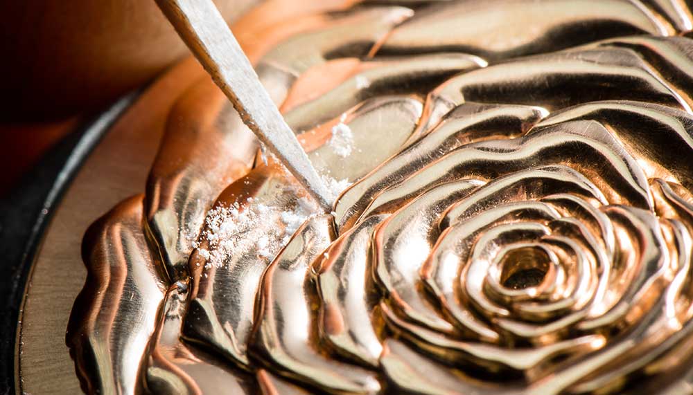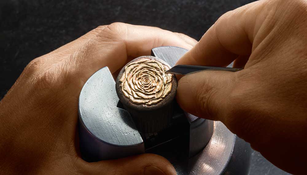 Having worked on the various disciplines of gem-setting, design and engraving for a quarter of a century, artisan Dick Steenman embraces each new challenge with an intrigued mind. Take, for example, his adroit execution of a gold-engraved rose on this year’s Altiplano 38mm by Piaget. On an incredibly slim dial, the Dutch artisan sculpts the Piaget rose’s petals to elongate the perceived depth of the engraving.