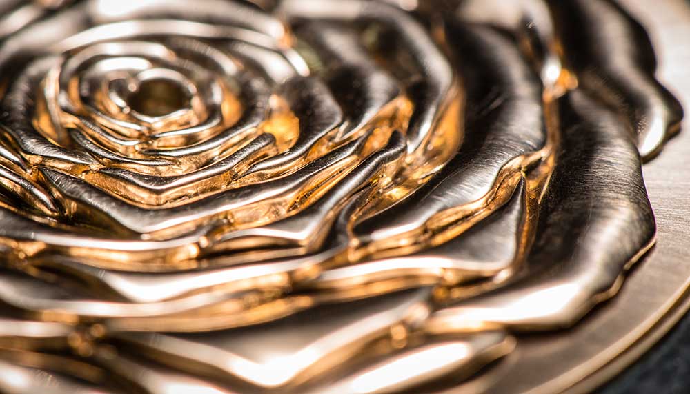 The intrigue then comes from an optical illusion of volume despite the thinness of material, specifically on the dial. For this, Steenman’s method is to work rhythmically on the petals in a manner where he no longer needs to look at what he’s doing because his movements have become instinctive. In order to achieve this desired plateau of craftsmanship, Steenman prepares himself by getting into a near-meditative state. “Something guides me and I feel like I’m not doing this alone,” he says, adding that music sometimes helps to access this plane of inner peace. “That is when my work flows out best – call it magic if you want.”