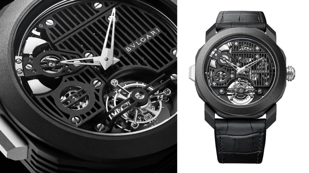 The Octo Roma Caliber BVL428 also comes with cut-out bridges and a unique arrangement of the components to better reveal the mechanism to the wearer (and its spectators). The hammers, gongs and tourbillon cage come in alternating polished steels for depth of presentation, while the mainplate and bridges are treated in PVD.