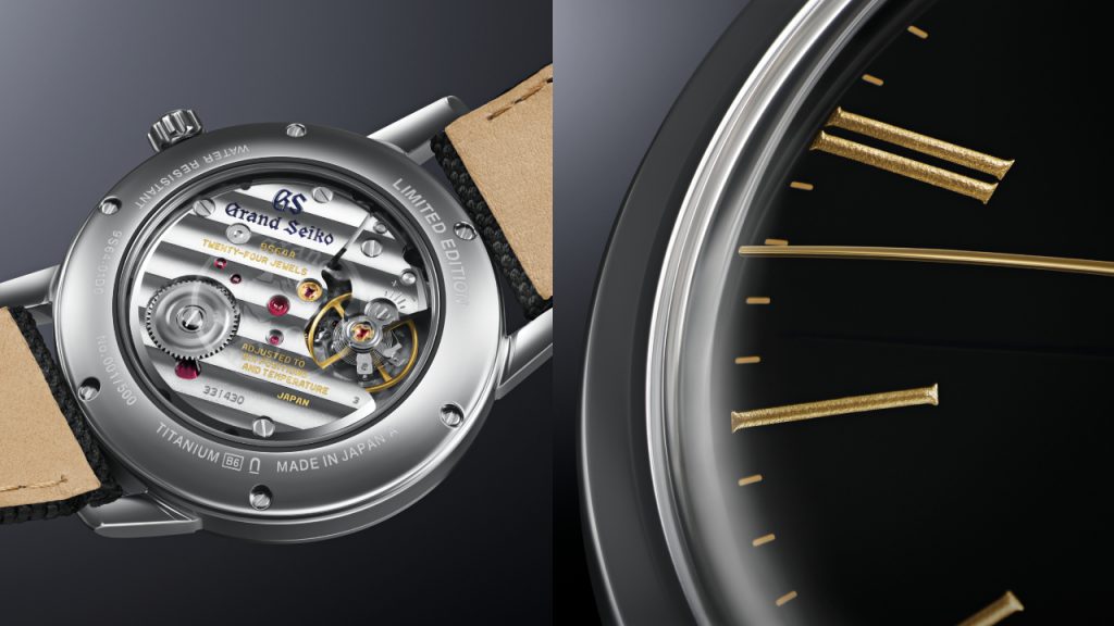 This edition sets itself apart with its dial. It is an inky, captivating black that gleams with depth thanks to its urushi lacquer makeup. Urushi lacquer is an ancient Japanese craft, and these dials ware attended to by one such master of this craft, Isshu Tamura, out of his studio on Japan’s west coast. The markers and Grand Seiko signature are built-up through successive layers of lacquer, and are then coated with gold powder – a technique known as maki-e – to give them a textured gleam that acts as a counterpoint to the meticulously polished gold hands. The curved surface of the dial adds an additional challenge to this process, but results in a level of fine detail that, in customary Grand Seiko fashion, are a joy to admire up-close. The demanding process is no doubt a contributor to this watch’s limitation of 500 pieces worldwide.