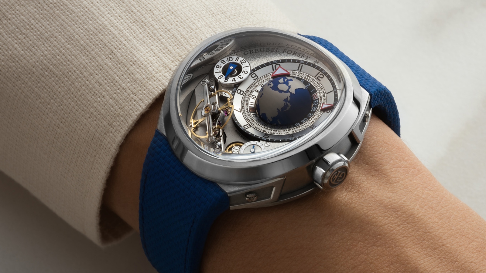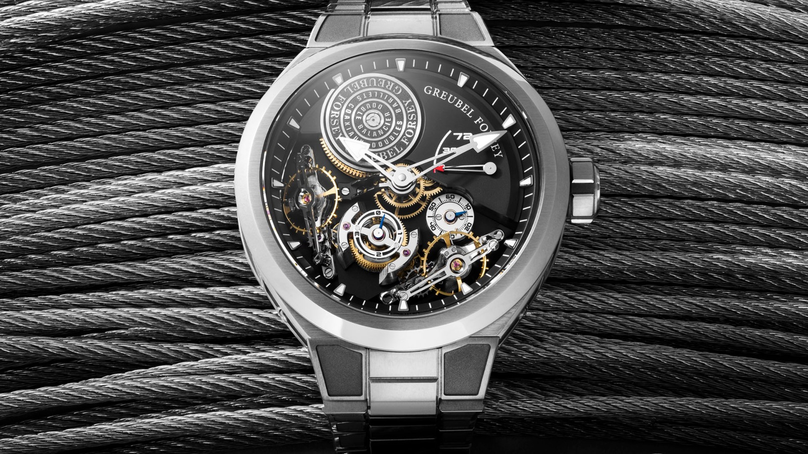 Framing the whole scene is another Greubel Forsey signature element: The proclamation of its brand values. They often (though not always) appear somewhere on the brand’s watches, including the baseplate, caseback or case side. Here, the slogan, in French, is executed in a relief-engraved fashion around the inner bezel under the crystal reading, “Architecture, Harmonie, Innovation, Technique, Bienfacture (Craftsmanship), Passion, Science, Exclusivité, Créativité.” It’s a mantra that defines luxury watchmaking today.