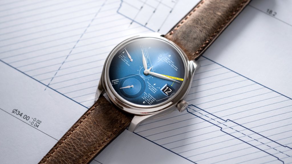 In the world of haute horologerie, timepieces are prized for highly complicated movements and designs. But with H. Moser & Cie’s new “perpetual calendar for dummies” on your wrist, you’ll spend much less time on Google searching its configurations. Dubbed the Endeavour Perpetual Calendar Tutorial, the 42 mm watch features notes that resemble a “cheat sheet” and drawings that highlight its movement—and for connoisseurs of the brand, this sense of quirky humour is one of its defining characteristics (more on that in a moment). The piece has an 18-karat white gold case and contrasting “funky blue” fumé dial with a sunburst pattern. Limited to just 20 examples it was created to commemorate the launch of an updated version of the brand’s former Funky Blue edition from 2015. Sporting H. Moser and Cie’s logo in a stealthy new transparent lacquer, that reimagined timepiece is also now available.