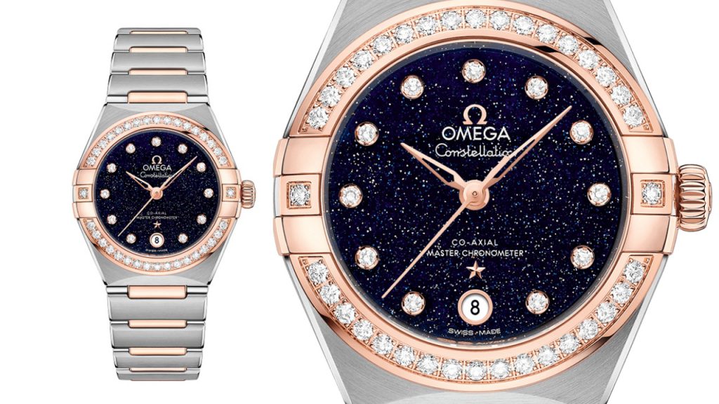 Say it with horology with this unmistakably feminine timepiece. The enduring representation of the moon to symbolise love and romance makes the Omega Constellation an ideal pick. This celestial connection is particularly heightened with its blue aventurine glass dial to evoke a starry night sky, and the famous half-moons of this collection. All this is encased in 18k Sedna gold and stainless steel, with a diamond-paved bezel on this 29mm piece. Powering this is one of the most robust and resilient movements in a ladies timepiece, the Omega Co-Axial Master Chronometer Calibre 8700, which can be viewed via a scratch-resistant sapphire crystal case back.