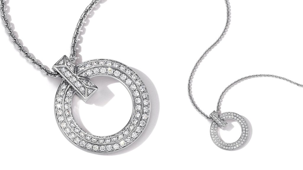 At its heart, the Tiffany T1 collection was designed to represent individual strength and perpetual power. This bold design is seen in rings as well as this particular necklace and circle pendant where round brilliant diamonds (totalling 0.65 carats) are placed on 18k white gold. What’s more, in light of the current situation, Tiffany & Co offers a home delivery service for a Valentine’s Day surprise right at her very own doorstep.