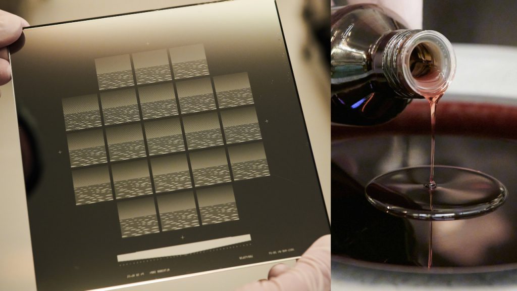 The process was developed in partnership with the Neuchâtel-based Swiss Center for Electronics and Microtechnology. The organisation’s engineers discovered a way to control the amount of material deposited during production to create different hues in the wafers for subtle shades to create a serene wave-like pattern.