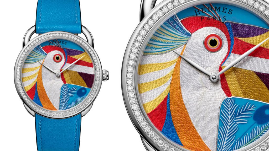 Hermes’ Latest Toucan De Paradis Watch Features A Dial That’s Painstakingly Embroidered By Artisans