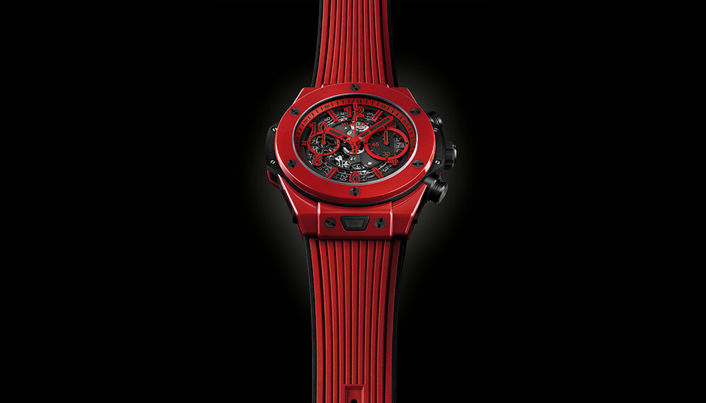 Taking up four years of R&D, Hublot’s vibrant red ceramic is not just about the aesthetics though. Compared to ordinary high-tech ceramic which is already very hard and scratchproof, this newly developed version is incredibly dense and resilient, with a hardness of 1,500 HVI as compared to 1,200 of conventional ceramics.