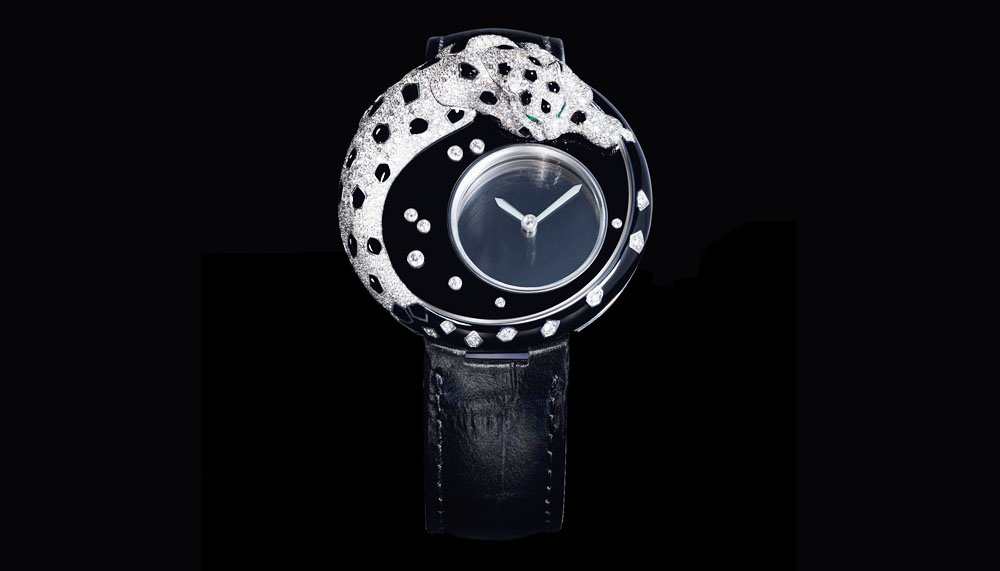 The enduring Cartier Panther makes another appearance in the French house’s sextet of Pre-SIHH watches. Dubbed the Panthère Mystérieuse, it features a panther of 533 diamonds, black lacquer and 2 emerald eyes curled sinuously around a mystery dial propelled by components sequestered at the rim of the Calibre 9981MC movement. The case is a rhodium-finished 18k white gold. A perfect blend of Cartier’s expertise in jewellery and clockmaking, this enthralling piece lives up to its enigmatic name.