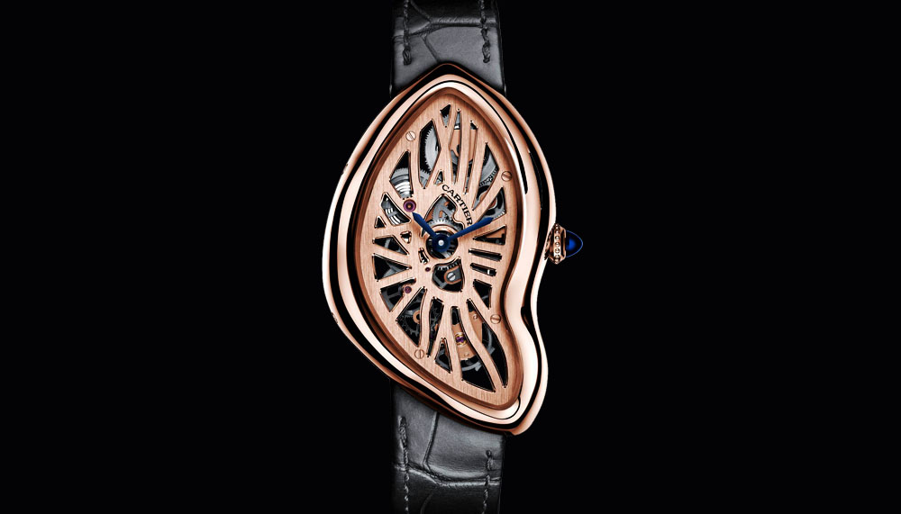 One of the most distinctive and original watch designs returns this SIHH. Supposedly inspired by a watch ‘damaged in a fire accident’, the melted Dali-esque shape might have an (apocryphal) origin, but the success of its relaunch as a women’s watch in 2012 is undeniable. It was introduced in platinum at last year’s SIHH, and in 2016 will now be available in pink gold. The movement is Cartier Calibre 9618 MC, a shaped calibre running in 21 jewels and is large enough to be pulled off by a daring man, as well as fashionable ladies worldwide.