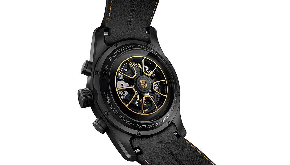 Each of the 500 new chronographs will be cased in lightweight titanium, finished in black via a titanium carbide physical vapor deposition (PVD). Each piece will be sold on a titanium bracelet, and will be accompanied by a pair of leather straps (with colour-matched contrasting stitching) as well as a Porsche Design Strap changing tool. Both the watches and the cars are now available for order via Porsche Centres worldwide, and delivery of each watch is scheduled in sync with the delivery of the new car.