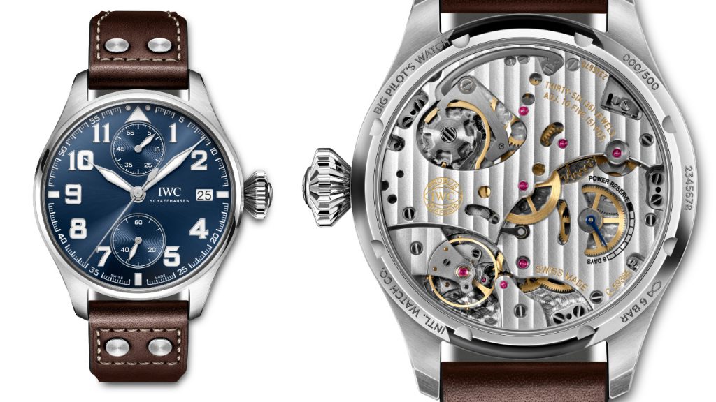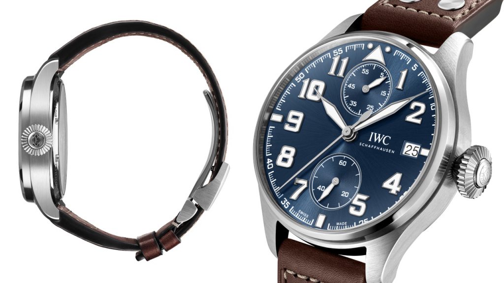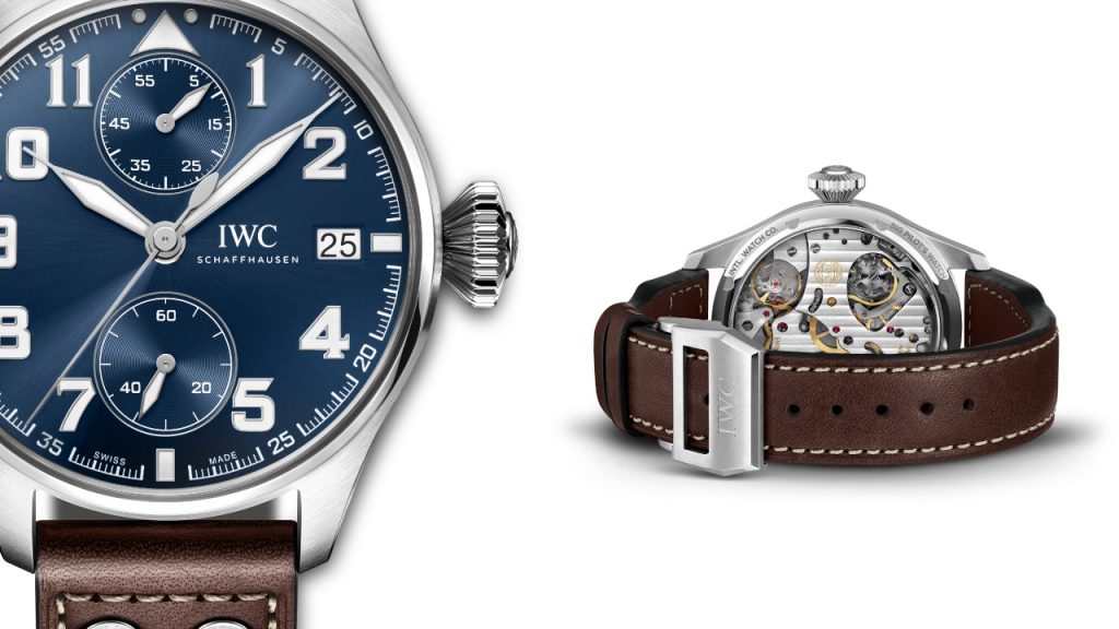Limited to 500 pieces, the Big Pilot sports a sizable 43 mm stainless-steel case, along with the trademark “Le Petit Prince” deep-blue sunburst dial and rhodium-plated hands. The hands, indices and numerals also feature a luminous coating to make the dial easier to read at night or in low light conditions.