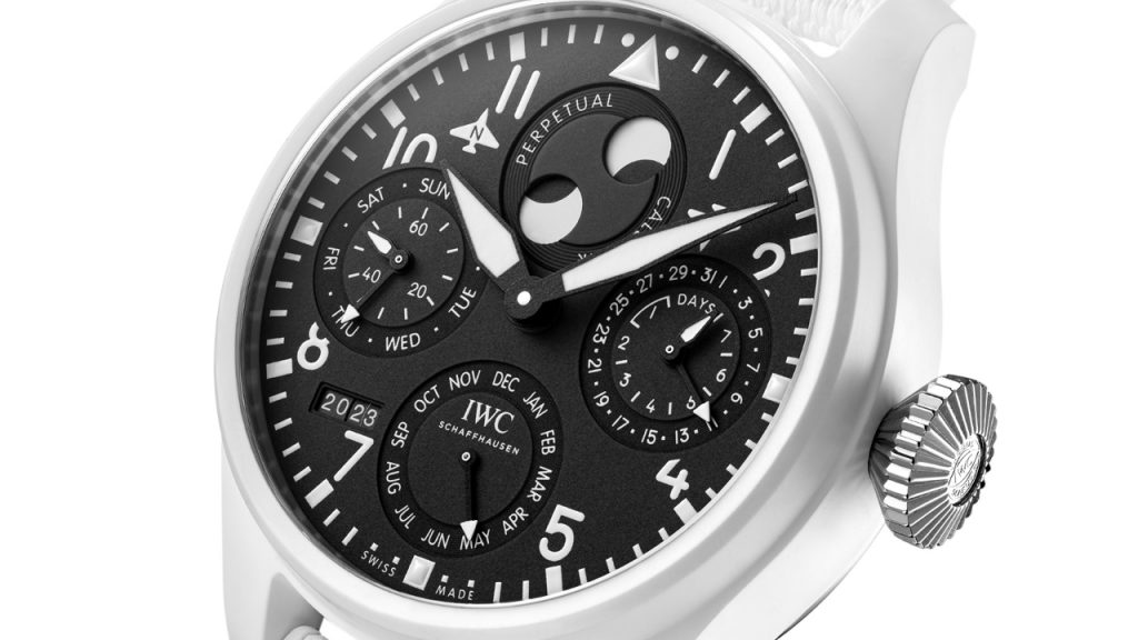 The new model is part of IWC’s ever-expanding Top Gun collection that was launched in honor of the Navy Strike Fighter Tactics Instructor programme, a.k.a. TOPGUN. The timepiece, known officially as the Big Pilot’s Watch Perpetual Calendar Top Gun Lake Tahoe, features the same classic stylings as its predecessors but a chic new colourway. The white hue was reportedly inspired by the winter landscape of Lake Tahoe, hence the name. IWC has also released a Pilot’s Watch Chronograph Top Gun Edition in the Lake Tahoe shade.