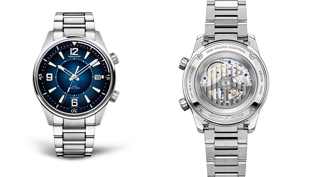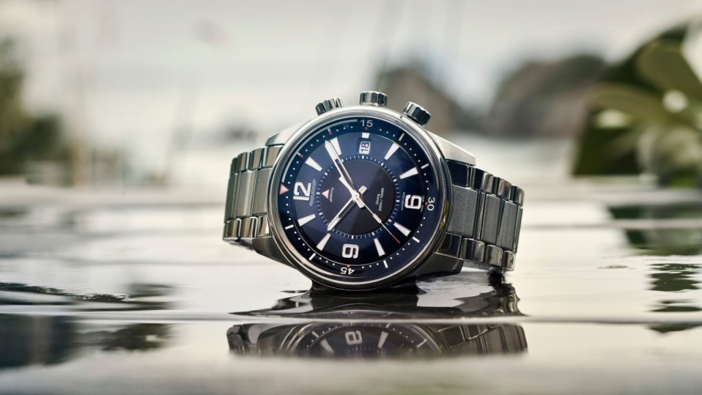 The Swiss watchmaker’s Memovox models have a long history with diving dating back 70 years when its diver alarm calibres were created for military use. In 1959, the company began making the models for civilians when diving began to take hold as an everyman sport. The Memovox Polaris was introduced a decade later and featured an internal rotating bezel, alarm and a triple-layer caseback for better sound in the deep. The latest models, equipped to handle depths up to 300 meters, now come with sapphire crystal casebacks for a full view of the calibre 956 on the Mariner Memovox AC, and the calibre 988 on the Polaris Mariner Date.