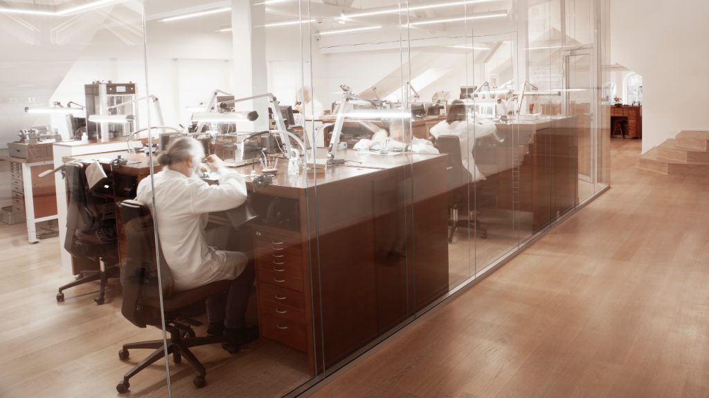 Amidst the displays of vintage tools and replicas of watchmaker’s desks from 200 years ago, beneath the large windows that would have once been those watchmaker’s only light source, the Heritage Gallery still has flashes of the atelier that it once was. The various workshops of today’s manufacture, filled with lab coats, LED lights, and wireless headphones, does seem quite far removed from the vintage charm of Antoine’s old studio. But the quietness and dedication remain, as the watchmaker’s watchmaker still takes its craft very seriously.