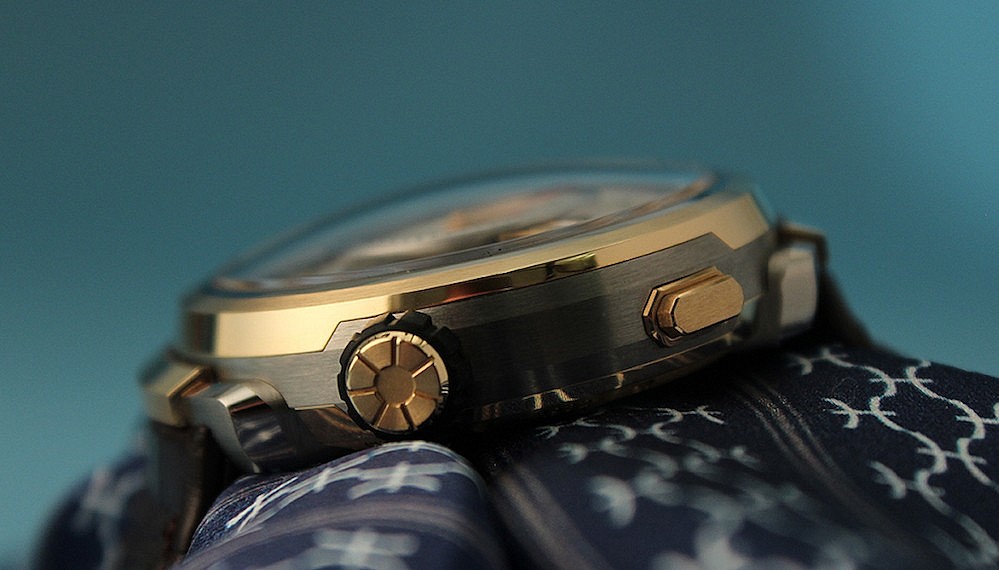 Retaining the same design DNA as last year’s Visionnaire DTZ, the chronograph will look rightfully foreign to you unless you have seen its older sibling. A hooded lug case design and bullhead pushers at 10 o’clock and 2 o’clock make it instantly stand out from anything conventional, but that’s just the beginning. Golden hour indices rest on a smoked sapphire outer dial that partially reveals the movement’s winding rotor. A pair of wide and stubby hands provide time indication on this outer track in relatively conventional form (other than the entire length of either hand not being visible). From there, what we can only refer to as a significantly proportioned central subdial takes up the bulk of the under-the-crystal real estate, providing indication for the chronograph. Once you are accustomed to its design, the Visionnaire Chronograph is one of the most easy-to-read chronographs on the market, adding a layer of practicality to its unique design aesthetic.