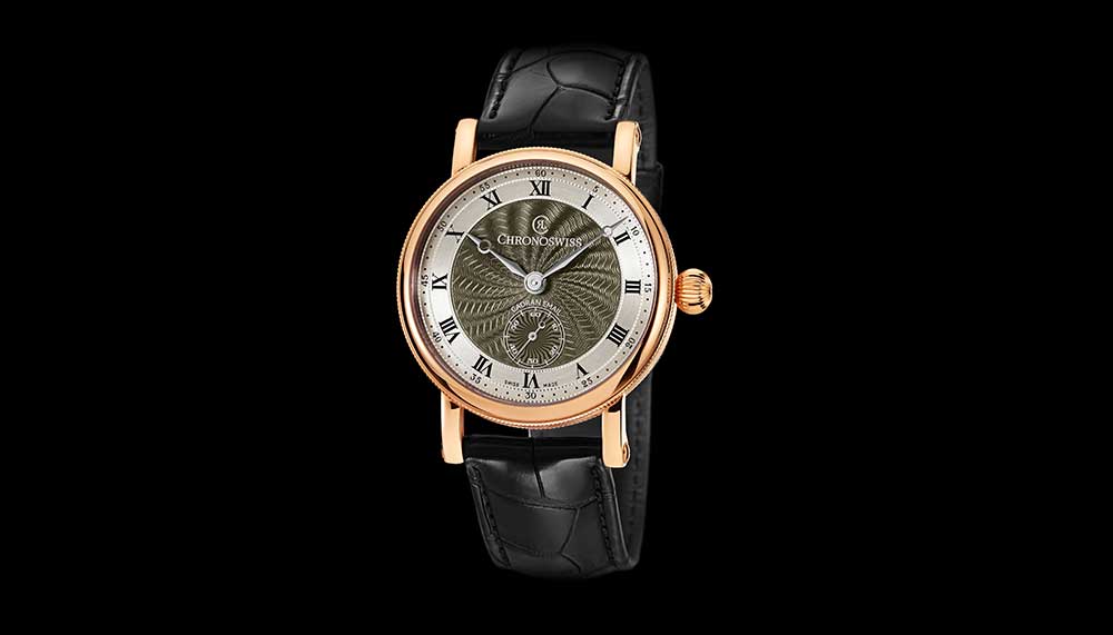 At Chronoswiss, Panziera is not only experimenting with new colours but also an entirely new flinqué technique that he calls “Breguet threading.” “This means that you cut another Guilloche on the enamel when the dial is already finished,” he says. This flourish is perilous, given the risk of putting tension on the brittle glassy surface, but Panziera is undaunted. He considers his innovation “a bold statement for the craft,” which he believes can continue to grow through new challenges.