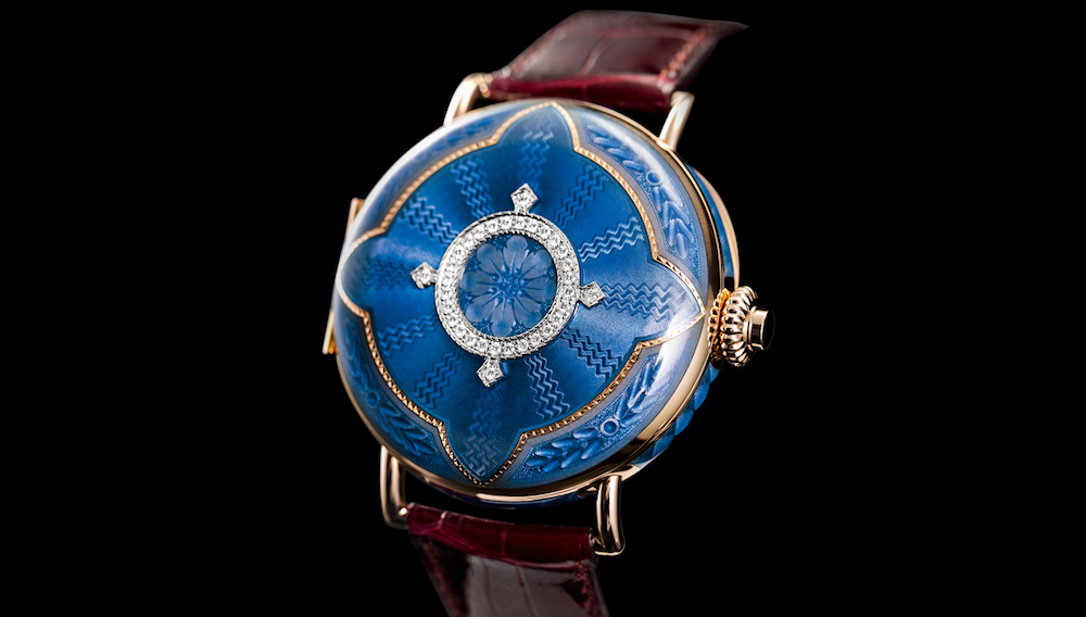 Enamel over engine-turned engraving – often called flinqué – is now enjoying a renaissance, as many companies rediscover the beauty of Fabergé’s signature technique. Some of these brands, such as Jaquet Droz and Cartier, have a history of combining the crafts of enamelling and engraving that predates Fabergé’s rise to fame. Others, such as Chronoswiss, have opened ateliers for enamelling only in the last decade. What all have in common – and share with Victor Mayer – is a devotion to learning all that can be gleaned from antique sources and carrying the craft into the 21st century.