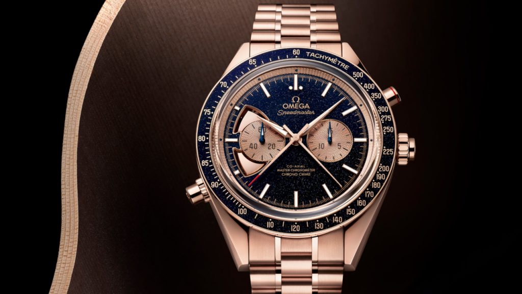 If all this sounds too esoteric, there’s also the new Speedmaster Chrono Chime. The brand took the 1932 and fit it into a special Speedmaster case, meaning you can chime the time with a more modern-looking watch on your wrist—albeit one made of solid gold. Housed in a 45 mm 18-karat Sedna Gold case molded after the second-generation CK-2998 Speedmaster, which debuted 60 years ago in 1962, this Speedy features a blue aventurine “Grand Feu” enamel dial that sparkles like the night sky.