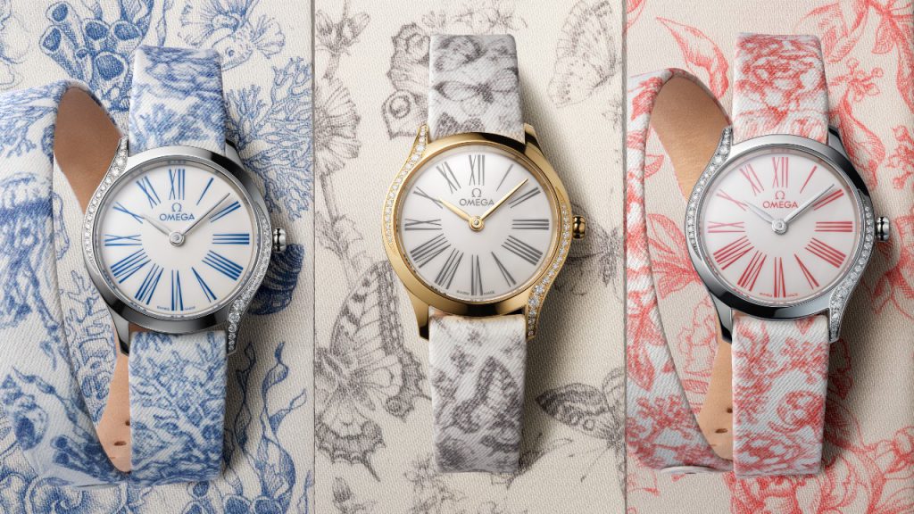 The Omega De Ville Tresor is an old name for the brand, which first appeared in 1949 and underwent a modern revival in 2017. The contemporary collection is simple, classical and noted for the two curves of diamonds that run on the bezel diagonally opposite each other. Elegant and feminine, the collection now has an even daintier option in the Mini Tresor. Measuring 26mm in diameter, it arrives in a variety of options. There are a trio of executions with patterned fabric straps – with motifs such as flowers or butterflies – and can be found as either a Moonshine gold case (RM34,050) or a steel case with a double tour band (RM17,950).