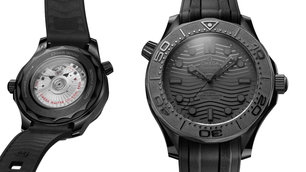 However, we suspect most clients will be rocking this for style more often on land than under the sea, so its fortunate that the design is something to behold. The 43.5 mm by 14.47 mm diver (US$8,650 or about RM36,000) comes in a polished-brushed black ceramic case complete with a black ceramic crown and helium escape valve on a rubber strap. And, for the first time, Omega laser-ablated the unidirectional bezel, diving scale and dial for a design created in positive relief from a single piece for extra dimension. The caseback, also in black ceramic, features a view of the brand’s patented Naiad Lock system with a wave-edged design. You can also see Omega’s Co-Axial Master Chronometer Calibre 8806, which offers 55 hours of power reserve.