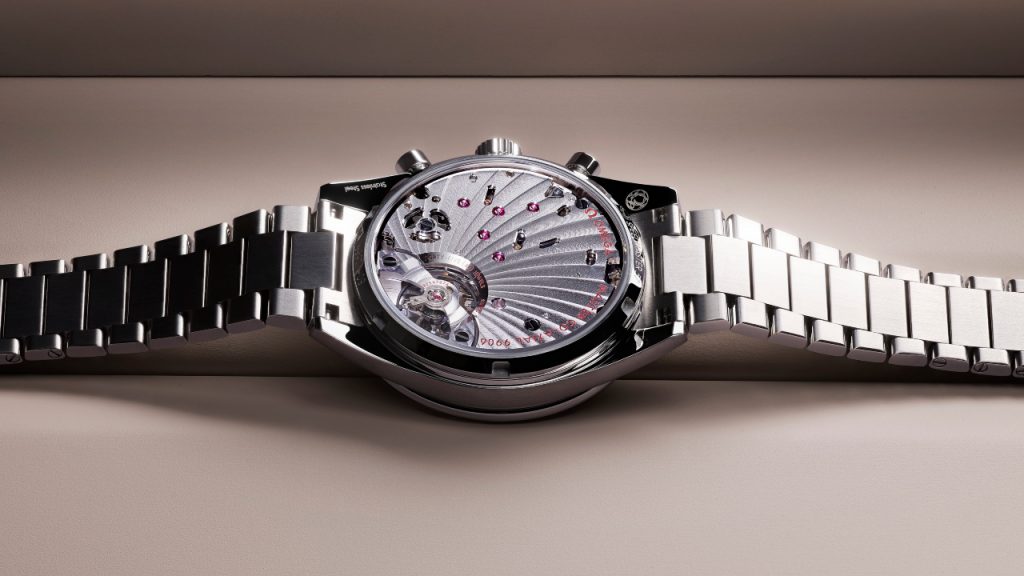 The bezel has a stainless steel insert that’s engraved and then coloured in with a laser treatment. The low-profile bracelet adds to the watch’s sense of slimness and wearability. As a bonus, it is equipped with Omega’s comfort release adjustment system, which means it can be adjusted by 2.20 mm, in two positions. The caseback is open and decorated on the back plate with Omega’s signature arabesque Côtes de Genève finish.