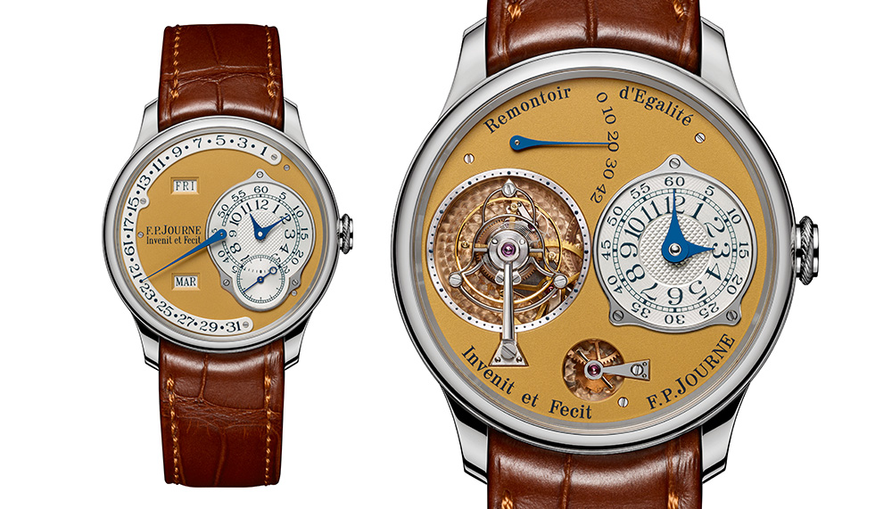 After building bespoke pocket watches in the 1980s, the very first wristwatch that Francois-Paul Journe created in 1991 had a platinum case with a diameter of 38 mm – unheard of at the time when the biggest timepieces measured between 33 and 36 mm. The watch was so large because it was the world’s first tourbillon wristwatch to be fitted with a remontoir d’egalite, a complex constant force device that required a certain amount of space. A decade later, to satisfy increasing demand from his collectors for heftier-sized cases, F.P Journe began offering each of his timepieces in two sizes: 38 mm and 40 mm. Available dimensions subsequently increased to 42mm after he introduced the Grande Sonnerie in a 42mm case in 2006 and clients started requesting watches in this size.