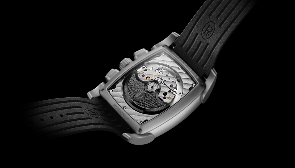 The integrated chronograph movement, with column wheel and vertical clutch, is not neglected, of course—in fact, it took six years of in-house development. In the spirit of unified design, the self-winding calibre PF362 it is also tonneau-shaped, and features COSC certification and a beat rate of 36,000 vibrations per hour. This, combined with an additional bridge that helps secure the balance against shocks, means the Kalpagraphe Chronometre Titanium is hardy enough to withstand the active lifestyle it is so clearly made for.