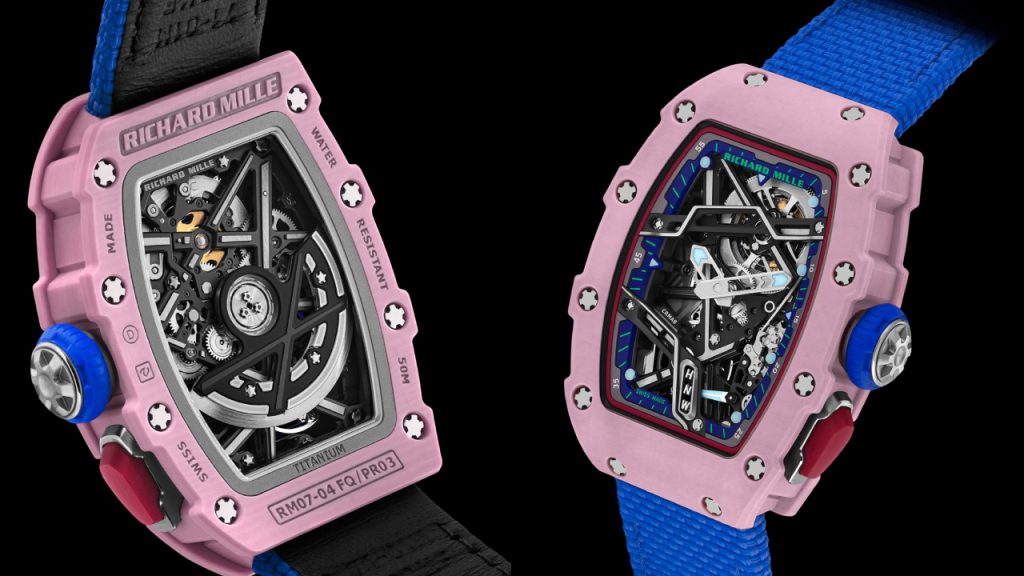 Speaking of aesthetics, the one Carbon TPT model sports a subtle black hue, while the five Quartz TPT variants are offered in creamy white, mauve, salmon, green and dark blue. The crown, baseplate and bridges are made of titanium, as is the insert that shows the signature of the model. The RM 07-04 Automatic Sport is marketed as a women’s watch, but it can, of course, be donned by any gender. You’ll just need around US$185,000 (about RM821,000).