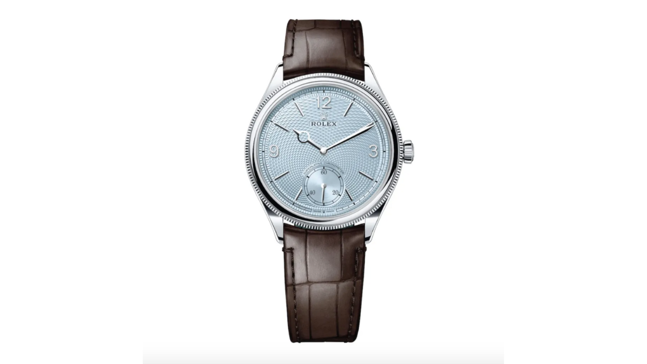 There were so many incredible watches at the fair: Vacheron Constantin’s diabolically complicated Chinese Perpetual Calendar broke a world recrod with 63 complications; the “how-is-this-possible” IWC perpetual Perpetual Calendar; the master-class in branding at Chanel; the creative genius of Marie-Laure Cérède and her team at Cartier. However, my love for classic watches—especially those with guilloché and blue dials with white metal—means that, for me, the Rolex 1908 in platinum was the “King of the Fair.” Even without the gorgeous rice-grain guilloché pattern, this dial is a winner. It’s minimalist and elegant, with long, needle-thin indexes, three Arabic numerals and circle-tipped Breguet-style hour hand. The bezel follows suit, with discreet fluting only on the lower edge. The case is 39 mm: perfect. Is it a Superlative Chronometer? Of course. Rolex has historically used light blue dials with in its platinum watches, so in a way Rolex started what appears to be a new trend based on what we saw at Watches & Wonders last week. —Carol Besler, Contributor.