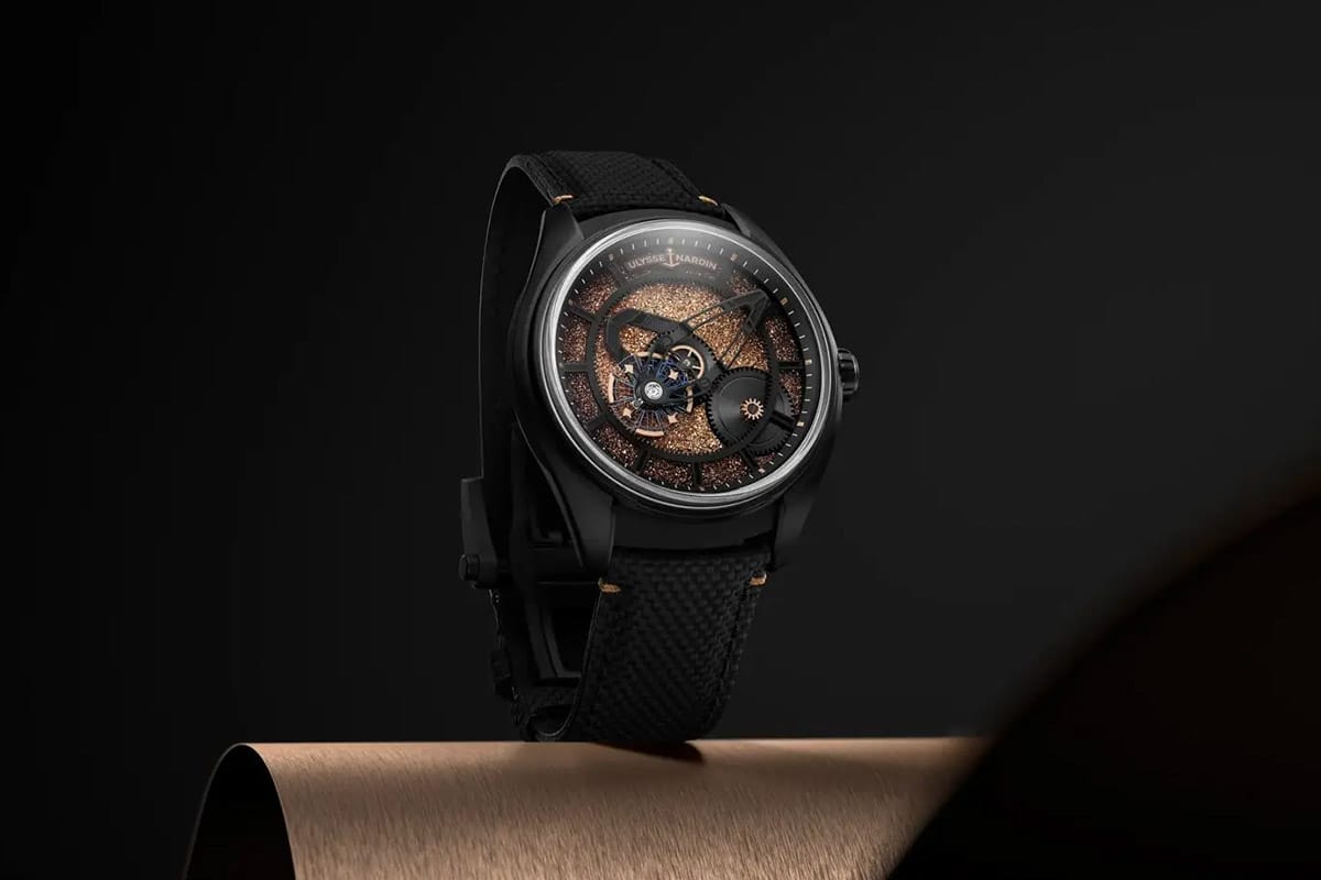 The Freak has the enviable image of being a watch which appears as if beamed down from a Martian ship, while actually being 24 years old this year. Few watches have managed to preserve their shock value for nearly a quarter century, but Ulysse Nardin’s Freak still feels like it just landed from another planet. At 24 years old, the movement-as-minute hand remains a design gesture no one has truly replicated. The new Crystalium edition cloaks that signature architecture in a black DLC case while layering in high craft. At its centre, a ruthenium disc—formed over days through controlled vapour crystallisation before being treated with rose gold PVD to accentuate its sparkle—with a crystalline texture as rare as its process. Limited to just 50 pieces, it fuses engineering theatre with artisanal allure and manages the rare balance of stealth and glamour.