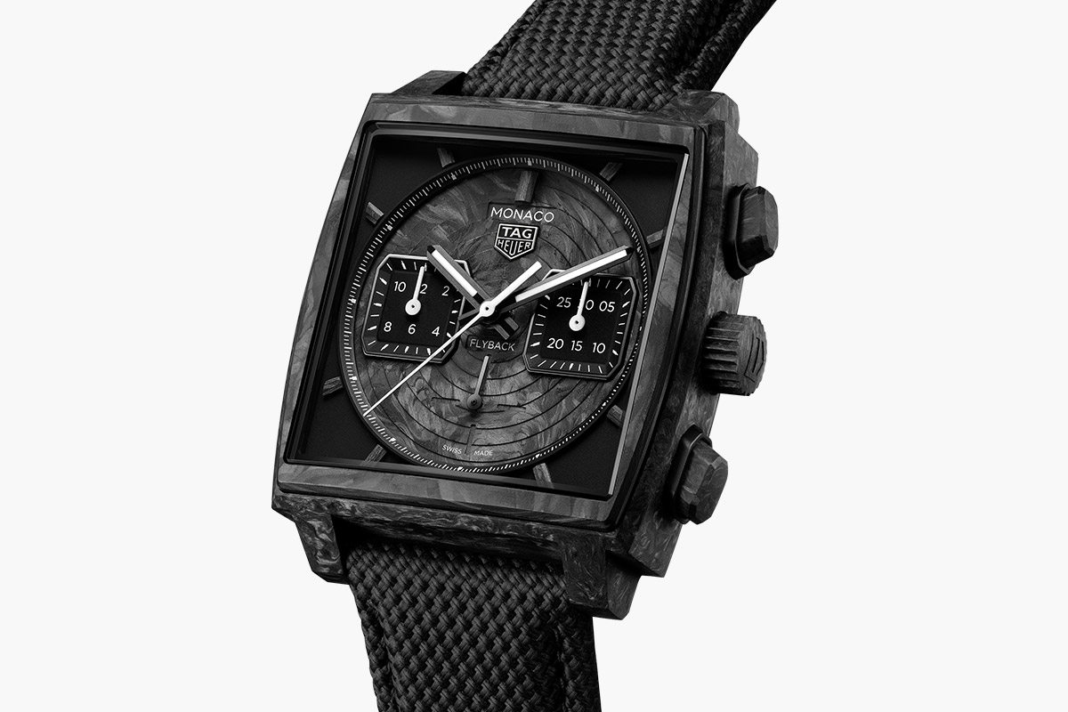 One of the more interesting aspects of this year’s expanded Geneva Watch Days was the inclusion of TAG Heuer, present at the de facto LVMH hub at the lakeside Ritz Carlton. CEO Antoine Pin had taken a haute leaf out of the brand book and debuted no less than two new references with revolutionary carbon fibre hairspring tech as well as three poetic takes on the classic moon phase complication. Being in close quarters with the Monaco model in this futurist guise, the brand proves that under Pin’s guidance, we will surely see a return to a tech-heavy top tier for the brand. And judging by the debut last week, it feels a surprisingly natural fit alongside hard-hitting independents like MB&F and H. Moser & Cie. The Monaco is perhaps the most eyecatching of the two carbon fibre models, as an evolution of the well-known ’60s chronograph. The bow-sided square manages to harness its own racing legacy, Steve McQueen et al, while still appearing contemporary in its slightly menacing dark suit. With a retail price of CHF 17,000 (~ US$21,370), the 50-piece limited edition Monaco Flyback Chronograph TH-Carbonspring is a welcome return to high-tech form.