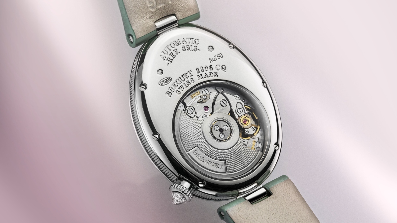 Numerous interpretations of the now iconic Reine de Naples timepiece with its signature slender ovoid case have been created since 2002. Embracing a palette of soft colours including pink, grey, and white, Breguet now introduces the ultra-feminine Reine de Naples 8918 in a fresh mint green shade. The delicate shade appears in Arabic numerals on the dial in two superimposed shades, which match the exemplary alligator leather strap fastened by a holding clasp adorned with 28 brilliant-cut diamonds. Between 11 and 12 o’clock sits the watch’s unique number, characteristic of the prestigious watchmaker that allows each of their timepieces to be traced, even to the future generations who will inherit it.