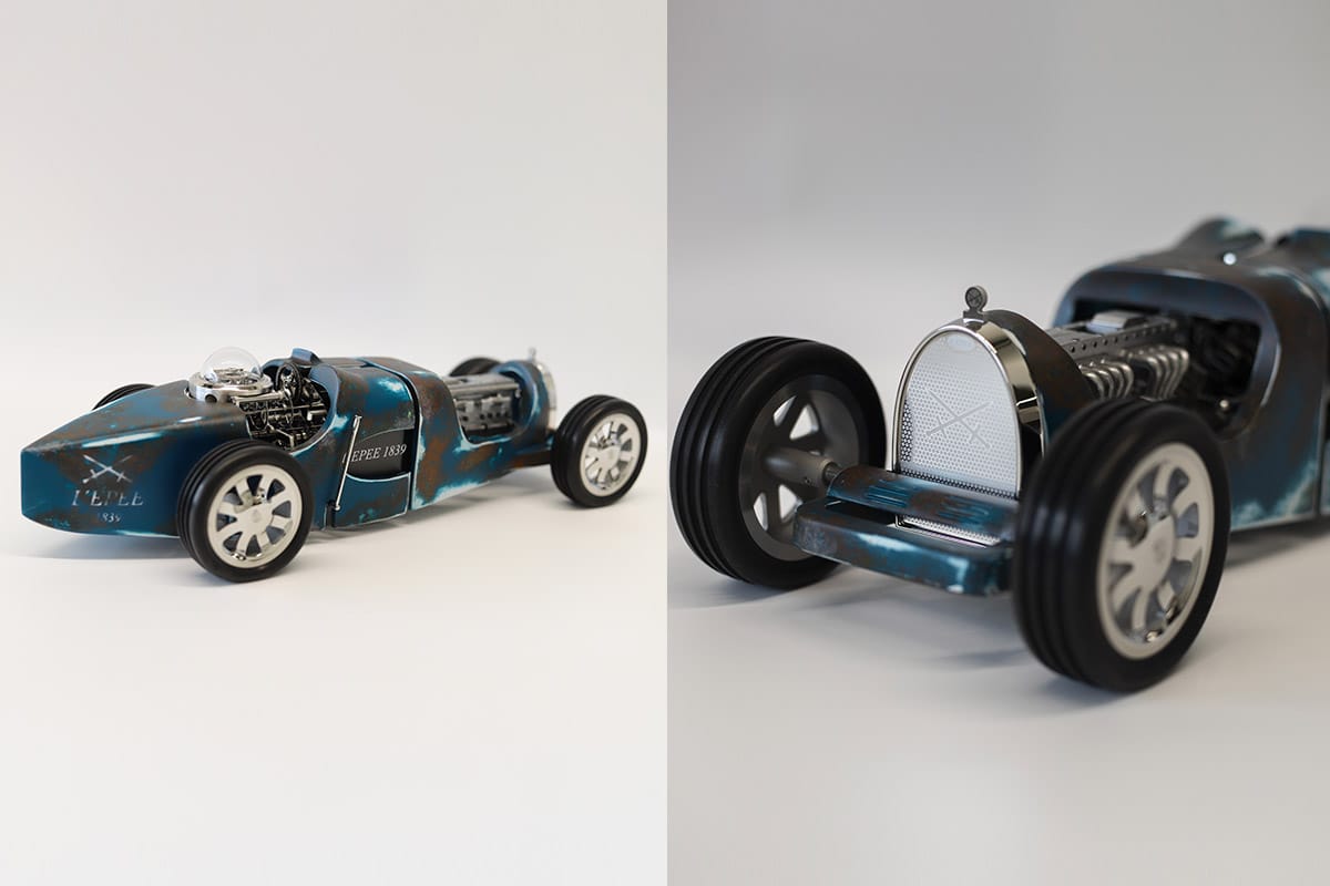 With this series from its Creative Art line, however, glorious splashes of colour are introduced to old favourites such as the mid-century automotive-inspired Time Fast and the propeller plane Time Flies. It also included this rendition of the TF35, known as the “Rust in Time” edition (RM208,700). A depiction of open-cockpit race-cars from the 1920s and 1930s, its bodywork has been given an airbrushed patina by artist and in-house artisan Jeremy Brun. Featuring blue and black colours, it is a creative suggestion of a weathered, rusted heap of scrap—which, of course, the TF35 is anything but. Its eight-day movement powers a discreet time indication on the side of the chassis, with the escapement in the driver’s seat beneath a glass dome. Within its V8-inspired engine housing, a concealed cigar torch can be revealed by activating the handbrake.